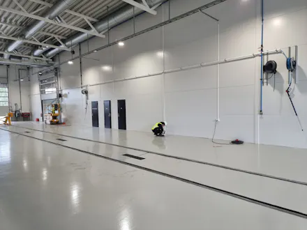 På oppdrag for Bane Nor ble det installert vaskeutstyr for tog og motordrevne sprutgardiner for å avgrense sprut fra vask.